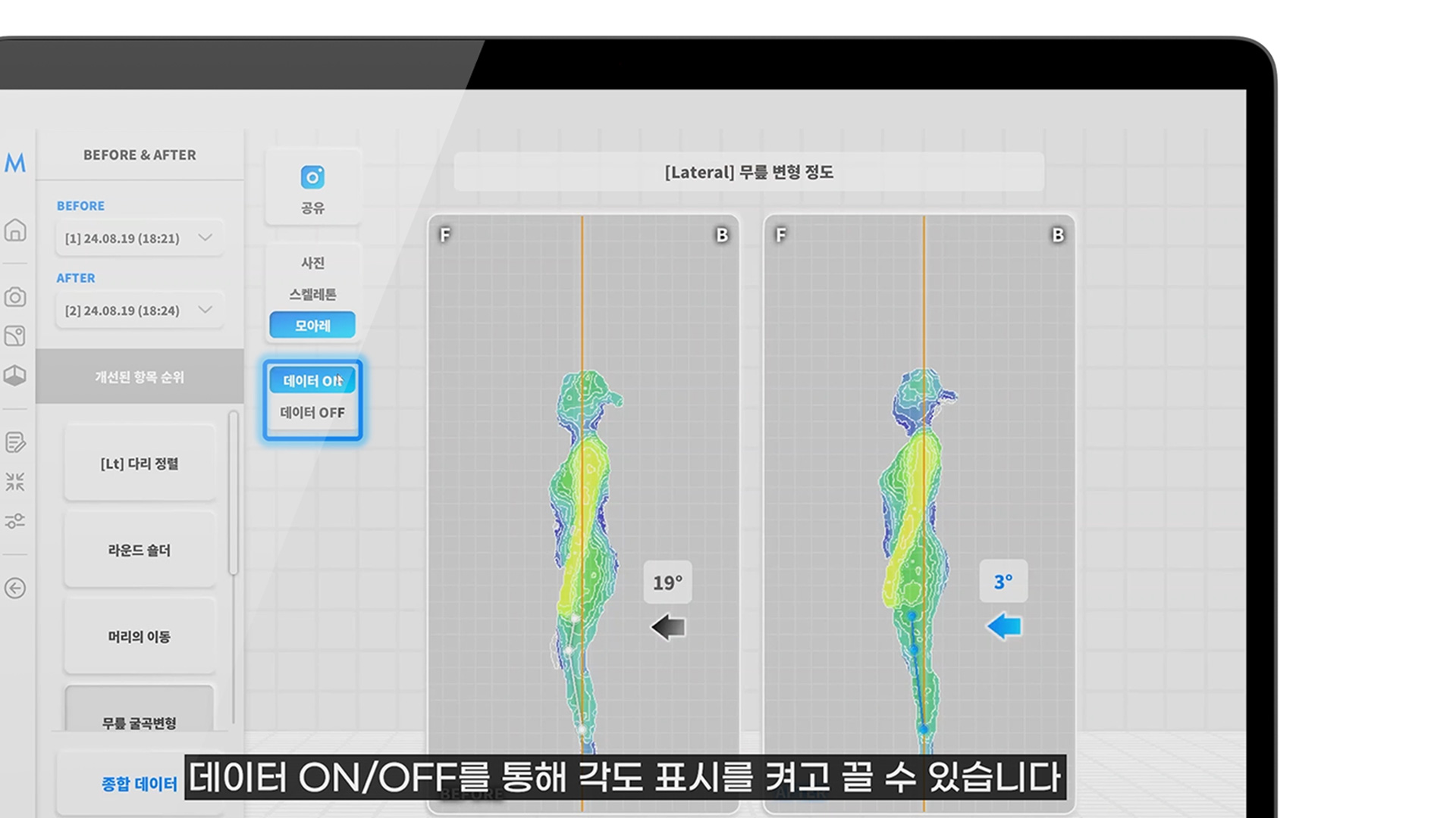 Motiphysio에서 O다리와 X다리를 측정하는 기준입니다.